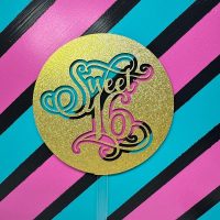 Sweet 16 Gold Glitter Round Acrylic Cake Topper EA