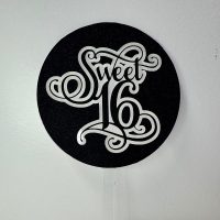 Sweet 16 Black Glitter Round Acrylic Cake Topper EA