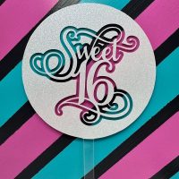 Sweet 16 Silver Glitter Round Acrylic Cake Topper EA