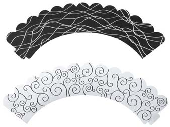 Add some elegance to your cupcakes with this black and white reversible treat wraps. Do not bake in wrappers.