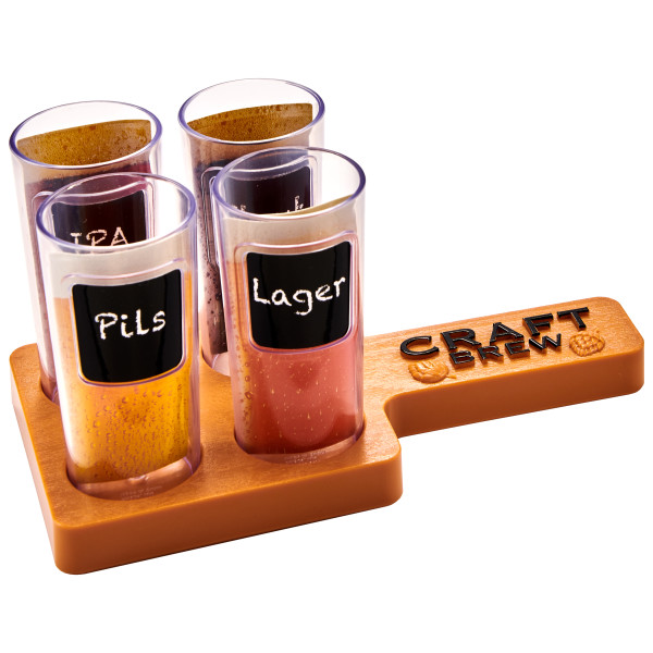 Perfect for the craft beer enthusiast! This beer flight-inspired design sets the tone for a grown-up gathering! Fun, subtle colors and a clear design make your guests want to belly up to this cake design.