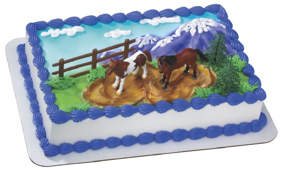 Horse lovers will fall in love with this equine themed DecoSet. This set includes two horses, a section of fence and two trees. 5-Piece set.