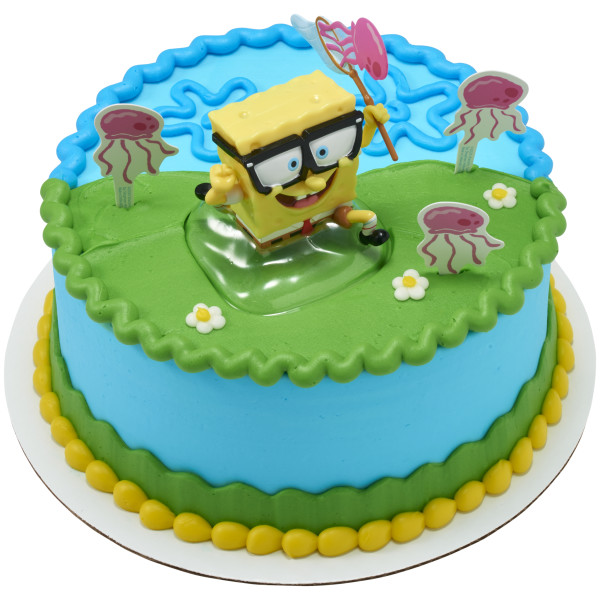 SpongeBob SquarePants on Clear tray holding Jellyfish and Net: 3.1 x 3.55 x 3.8 inches