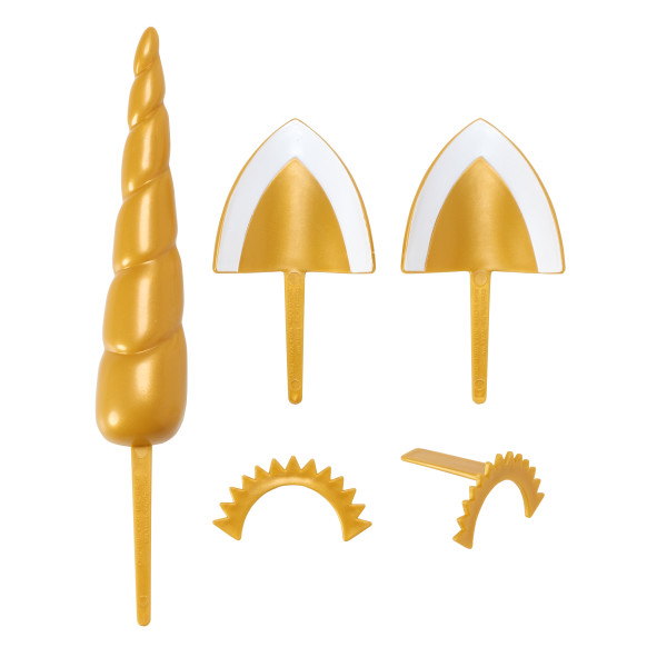 Unleash your creativity with this Unicorn Creations DecoSet! Make cakes of all shapes and sizes. Perfect for every celebration. Includes horn, eyelashes, and ears that make your Unicorn Creation all yours. 5-Piece set.