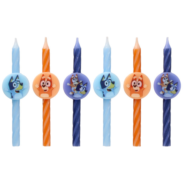 A Bluey cake for the celebration? For real life?! Bluey and Bingo are ready to join in on the celebration. 6 packages of candles per box.