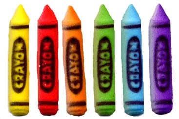 Add a tasty burst of color to your cake creation! Top off a variety of treats with this iconic look, creating energetic treats! Assortment includes crayons coming in red, orange, yellow, green, blue, and purple. Made of finely granulated sugar molded into shapes and painted with edible food color.
