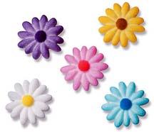 Add a vibrant, floral touch to any dessert with energetic daisy decorations. Assortment in pink, yellow, light blue, indigo and white.