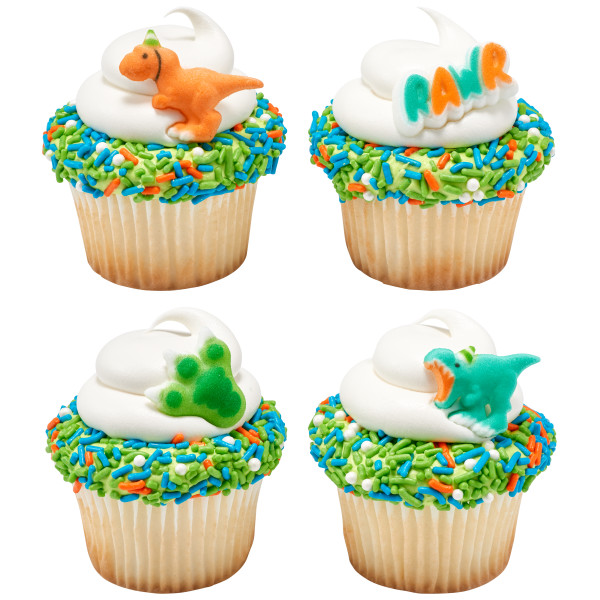 Millions of years can’t erase memories of the beloved dinosaur, make your dessert one to remember with this adorable dinosaur party assortment. Equally fun on cupcakes and cookies or as detail pieces on a birthday cake, kids will love the bright colors and fun RAWR of these tasty decorations. Made of finely granulated sugar and hand painted with edible food color.