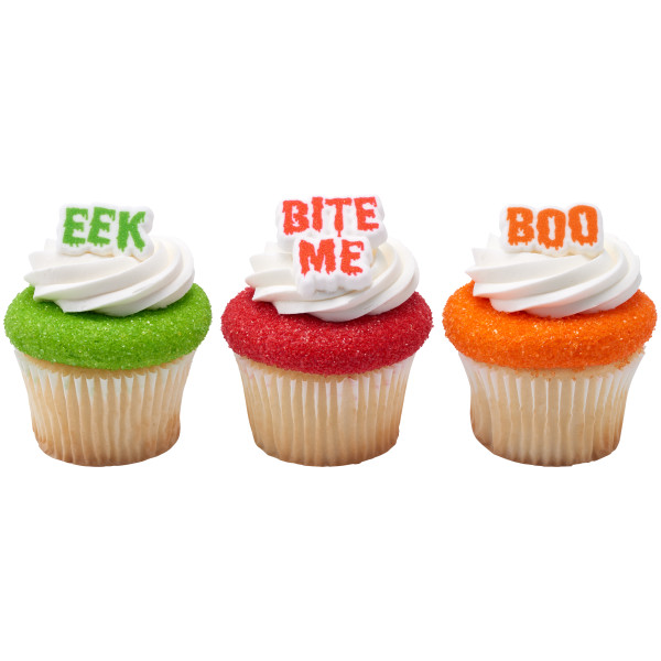 Dimensions: BOO: 1.35 x 0.80 x 0.25 inches EEK: 1.25 x 0.80 x 0.20 inches BITE ME: 1.40 x 1.45 x 0.20 inches