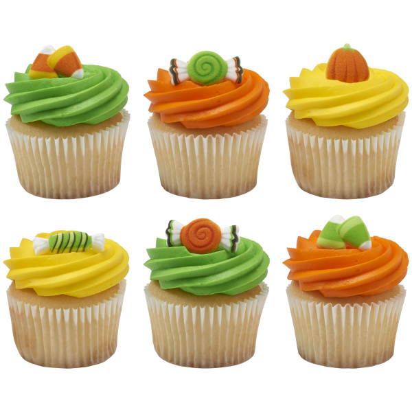 Have a sweet tooth? These cute and playful sweets are the perfect add to a Halloween treat. Assortment includes shapes of candy corn; pumpkins and wrapped candy. Made of finely granulated sugar molded into shapes and hand painted with edible food colors. Due to the nature of the product, slight color variations may occur.