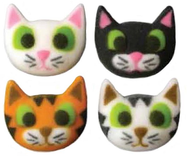 Playful kittens poke around your party platter with these decorations. Stock up on colorful cuteness! Assortment includes cats coming in orange, black, white, and mixed. Made of finely granulated sugar molded into shapes and painted with edible food color.