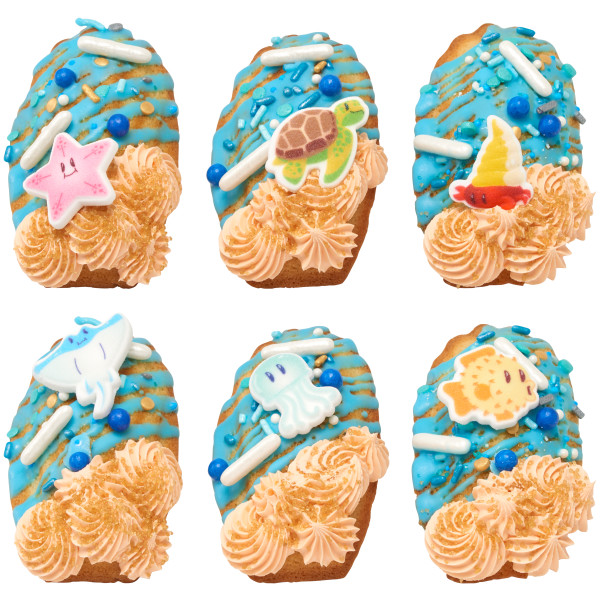 Dive into an underwater adventure with these sea friends decorations! Made of finely granulated sugar molded into shapes and painted with edible food color.