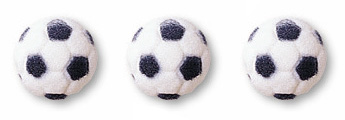 Kick up the sweetness in your cake creation! These decorations are a perfect way to treat the team, or celebrate game day! Soccer ball shaped decorations are made of finely granulated sugar and painted with edible food color.