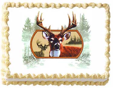 Hunters will fall in love with this majestic buck in the woods on this Edible Image®. Colorful printed designs made primarily from starch, sugar, and edible food colors. Can apply to iced cakes, cookies, cupcakes and ice cream cakes. Neutral taste. Melds into icing. Doesn’t tear when cut.