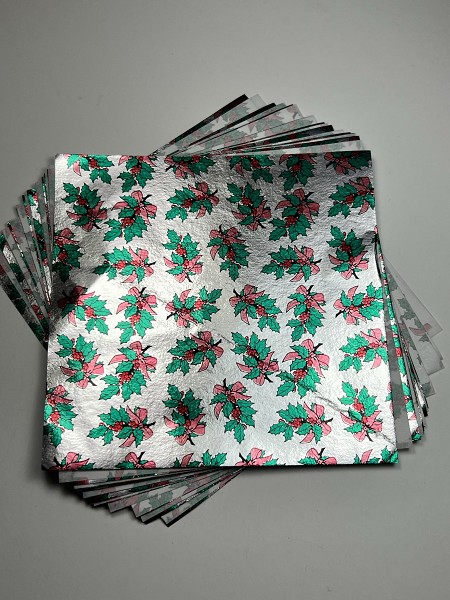 Foil Wrappers Holly & Bows 4″ x 4″ 500 CT