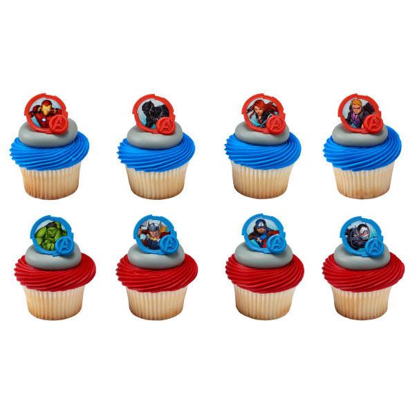 Marvel Avenger fans will flip out over these character rings. Assortment includes various characters from the Avenger movies. Great for cupcakes, donuts, or even finish off the look of a cake. Made with food-safe plastic.