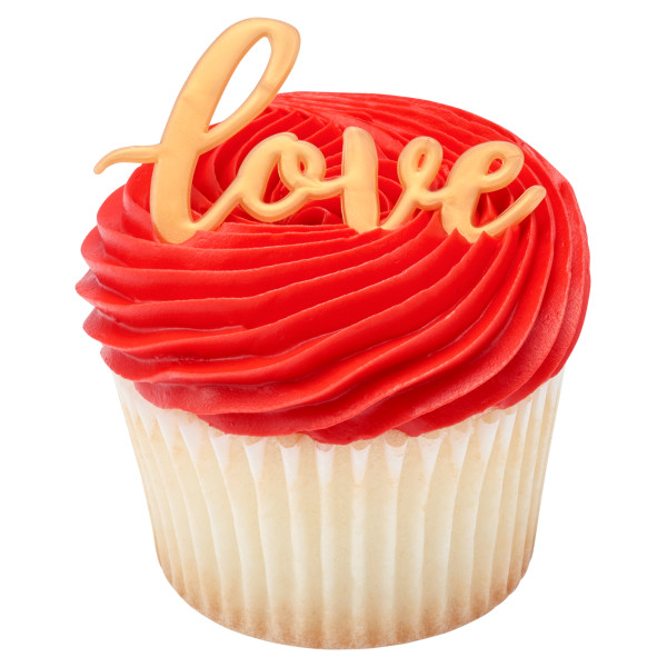 A simple gold love script is the perfect cupcake topper for Valentine’s Day, wedding, wedding showers and more. Elevate your design with sprinkles to match any color scheme!