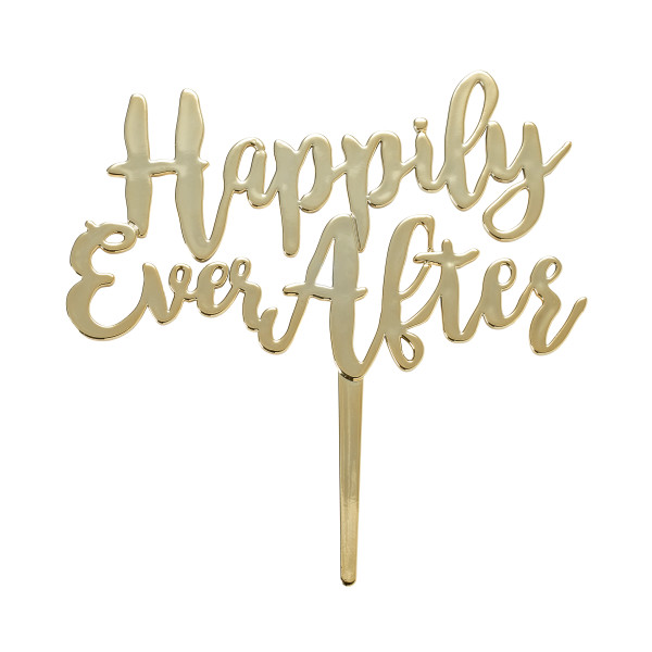Top off a wedding cake or add a little saying to serve to your guests with this beautiful gold Happily Ever After pic. A perfect beginning to a Happily Ever After! Great on cupcakes or a cake. Made with food safe plastic.