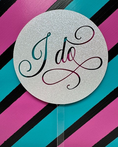 I Do Script White Glitter Acrylic Wedding Topper EA