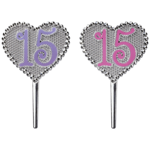 Make your child’s Quinceanera stand out with this 15 in a silver, sparkling heart! Great for cake and cupcakes to add to an overall theme.