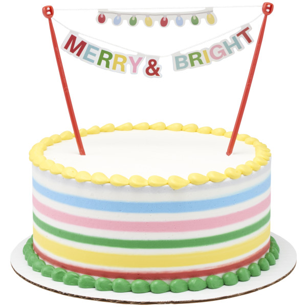 Add a dash of joy to your holiday festivities with this Merry & Bright banner layon! Layon features a printed pattern on the backside so this product truly can be the centerpiece to your Holiday treats!
