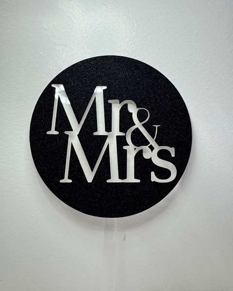Celebrate that special day with our Mr & Mrs cupcake toppers! A round acryllic design with a black glitter overlay.