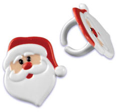 Santa is ready for the party with these cute Santa rings. Great for cupcakes, donuts, or even finish off the look of a cake
