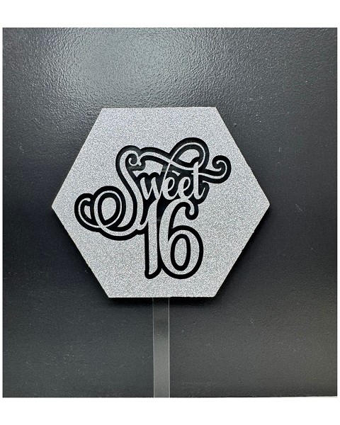 Celebrate that special Sweet 16 Birthday with our Hexagon Acrylic Cake Toppers, with a silver glitter overlay.