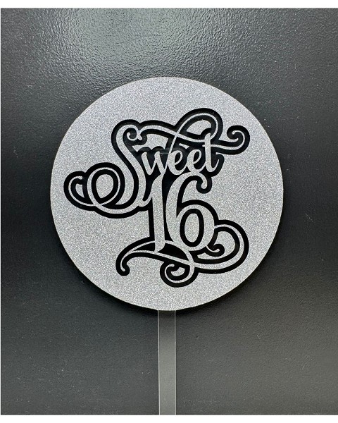 Celebrate that special Sweet 16 Birthday with our Round Acrylic Cake Toppers, with a silver glitter overlay.