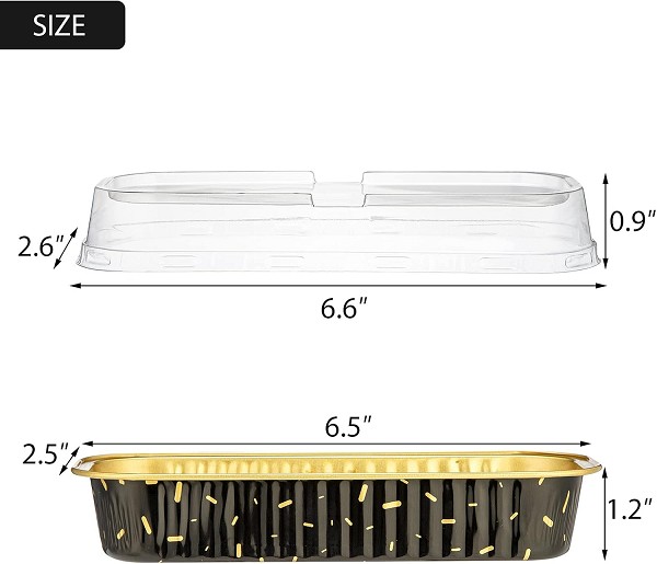 6.5″x2.5″x1.2″ Aluminum Foil Baking Cups Pan Tin with Lids,Rectangle Disposable