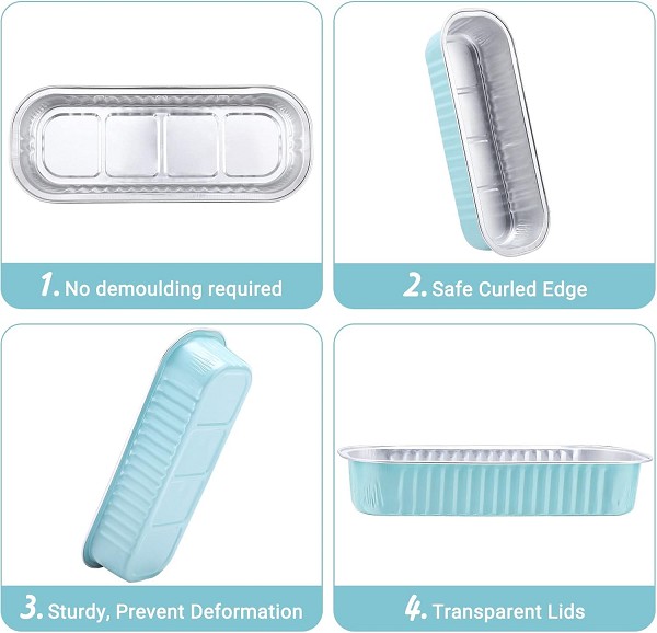 6.5″x2.5″x1.2″ Aluminum Foil Baking Cups Pan Tin with Lids,Rectangle Disposable