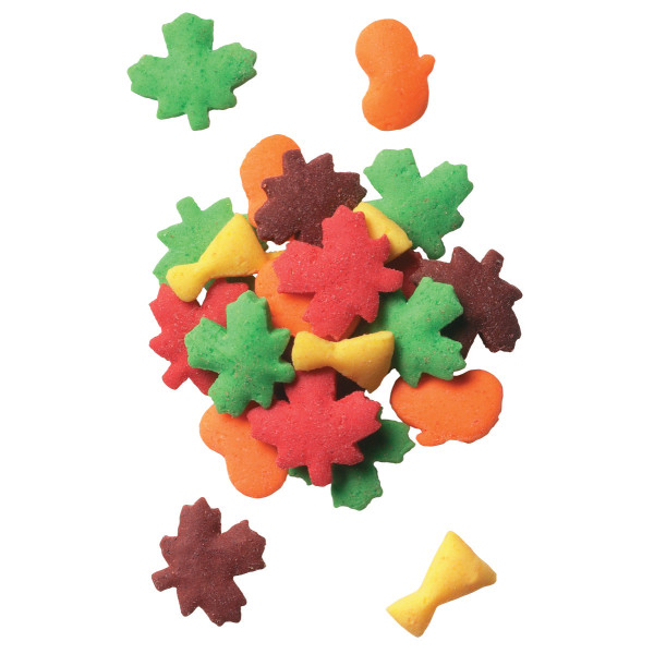 Fall into thanksgiving with this assortment. Assortment includes brown, red, orange, yellow, and green leaves and haystacks. 18 oz. handheld container. Due to the nature of the product, slight color variations may occur.