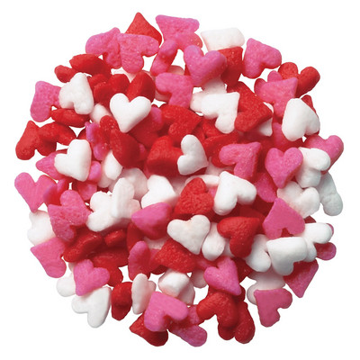 Red, white and pink mini hearts. Add to Valentine’s Day cupcakes, cakes and cookies for an easy holiday touch. Due to the nature of the product, slight color variations may occur. Made in the USA. Kosher.