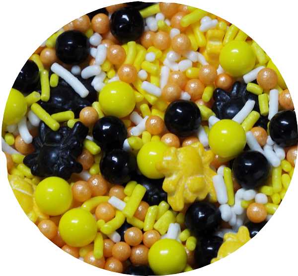 Spiders crawl through in this Yellow, White and Orange Mix of Jimmies and Pearls.