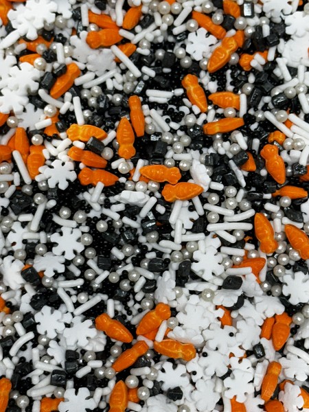 Decorate your Snow-tastic treats with our Melted Snowman Sprinkle Mix! Make with Snowflakes, Black Coal Rocks, and Carrot Noses of course!