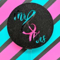 Mr & Mrs Script Black Glitter Acrylic Cupcake Topper 12 CT