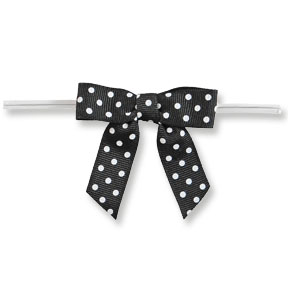 Medium Black Bow with White Dots on Clear Twistie 100 CT